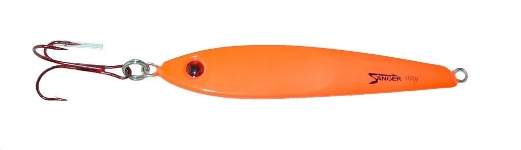 Einseitig abgeflachter Pilker der durch seine Form als Taumelpilker einsetzbar ist.