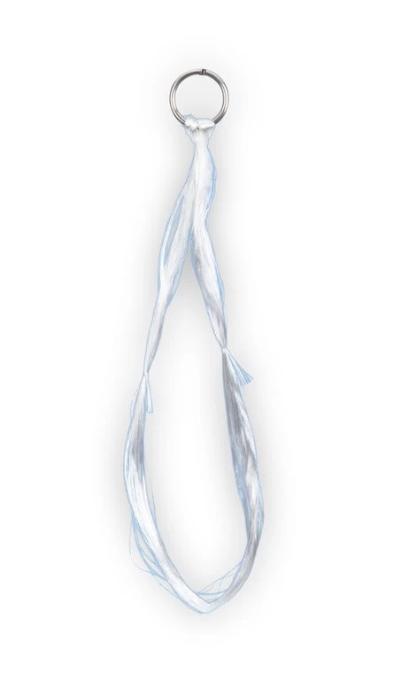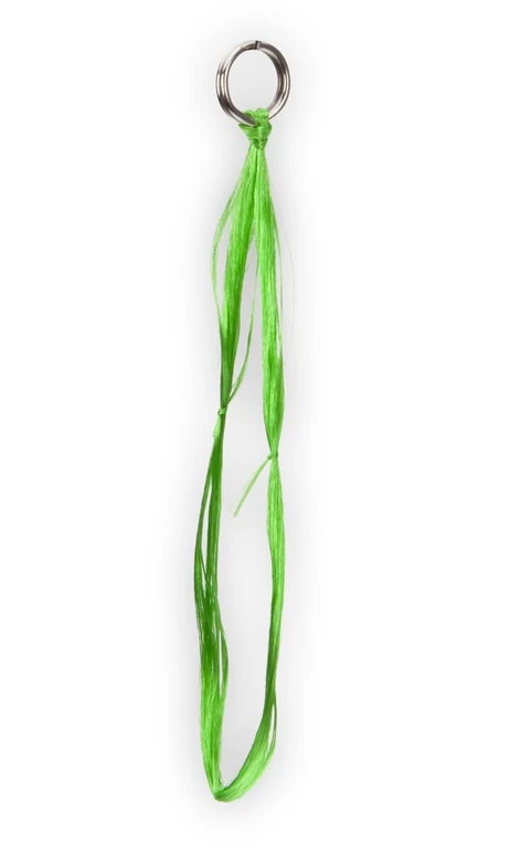 Schlaufe aus seidenartigem Material inkl. Sprengring. Die Hornhechtseide wird anstelle oder ggf. auch zusammen mit einem Drilling am Köder befestigt, damit sich speziell Hornhechte mit ihren kleinen Zähnen bei einer Attacke auf den Köder darin verfangen.