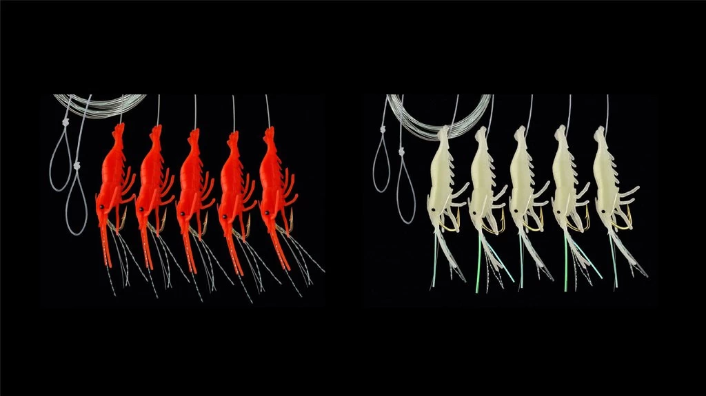 Dies ist ein sehr fängiges Vorfach mit 5 Seitenarmen. Es ist mit attraktiven Shrimp-Imitaten versehen und perfekt montiert bzw. geknotet. Es hat eine Länge von 150cm, eine Schnurstärke von 0,50mm und eine Hakengröße von 1/0. Es gibt zwei verschiedene Farben.