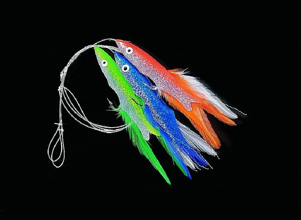 Das Vorfach besteht aus drei Seitenarmen an denen drei Sardinenimitate in verschiedenen Farben montiert sind. Dies besitzen Nickelhaken der Größe 5/0, welche an einer 0,45mm starken Schnur befestigt sind. Die Hauptschnur hat einen Durchmesser von 0,60mm.