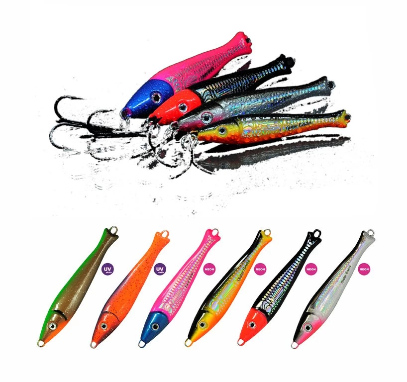 Die Modell Motor Oil und Crab UV besitzen eine Ghost HDUV-Folie, während die anderen Modell eine holographischen Schuppenfolie besitzen. Die pilker gibt es in fünf Gewichtsklassen von 60g bis 210g.