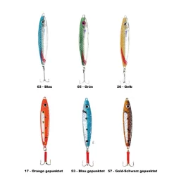 Dieses 3-teilige Set beinhaltet 3 verschiedene Blinker mit Gewichten von 18g – 26g. Es ist ideal für Meerforelle aber auch Hecht, Zander und Barsch.