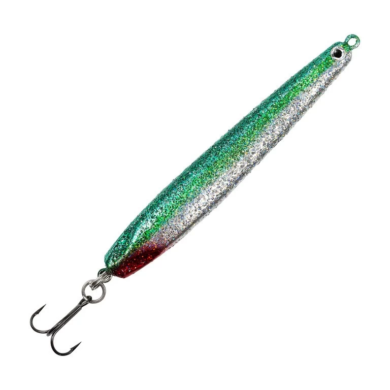 Sehr fängiger Meerforellenblinker mit rauher Oberfläche. Der Blinker imitiert einen Sandaal mit einer unglaublichen Aktion. Damit ist er für Meerforellen und ander Räuber einfach unwiderstehlich. Durch den doppelten Sprengring zwischen Blinker und Haken ist es schwieriger für den gehakten Fisch zu entkommen. Als Haken dient ein ultra-scharfer VMC Drilling. Es gibt diesen Blinker in 22g und 30g. Die zehn verfügbaren Farben decken alle möglichen Bedingungen ab, ob klarer Sonnenschein oder neblig trübes Wetter. Hier ist für jeden etwas dabei.