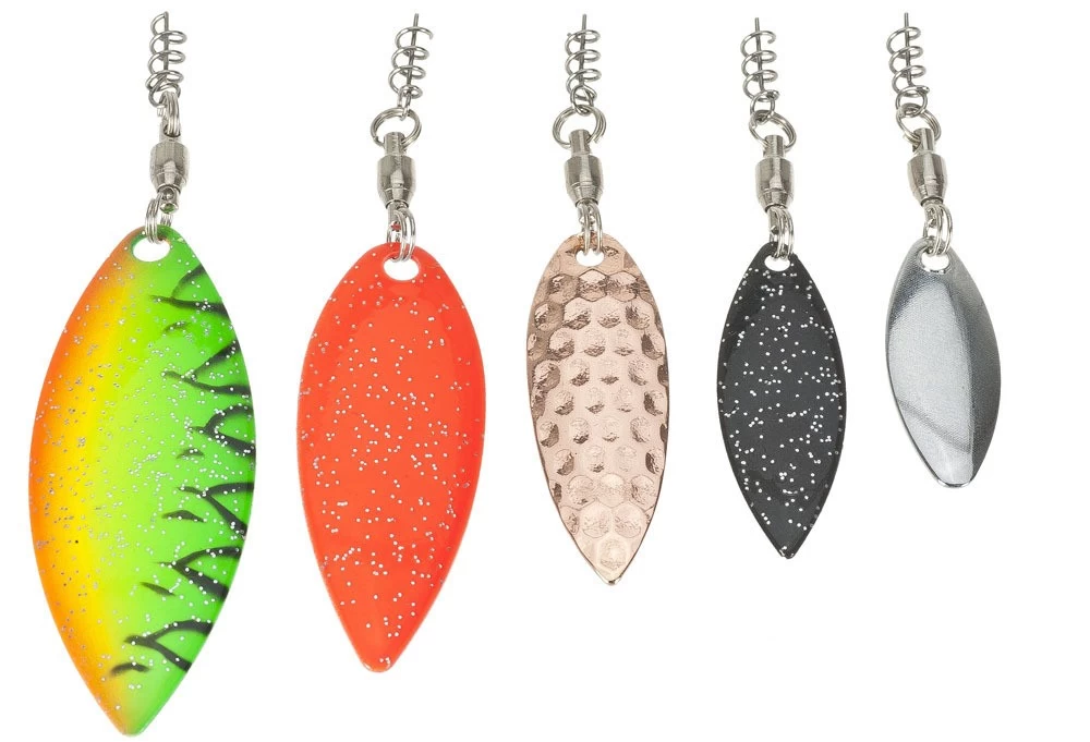 Mit den Add-on-Blades lassen sich Gummiköder noch attraktiver und effektiver gestalten. Das Blatt wird einfach an einer beliebigen Stelle in den Gummikörper eingeschraubt und der Kugellagerwirbel sorgt für ordentliche Wasserverwirbelung durch das Zusatzblatt. Diese Blätter sind in den Größen 23mm, 27mm, 35mm, 42mm und 50mm verfügbar. Jede Größe enthalt fünf verschiedene Farben.