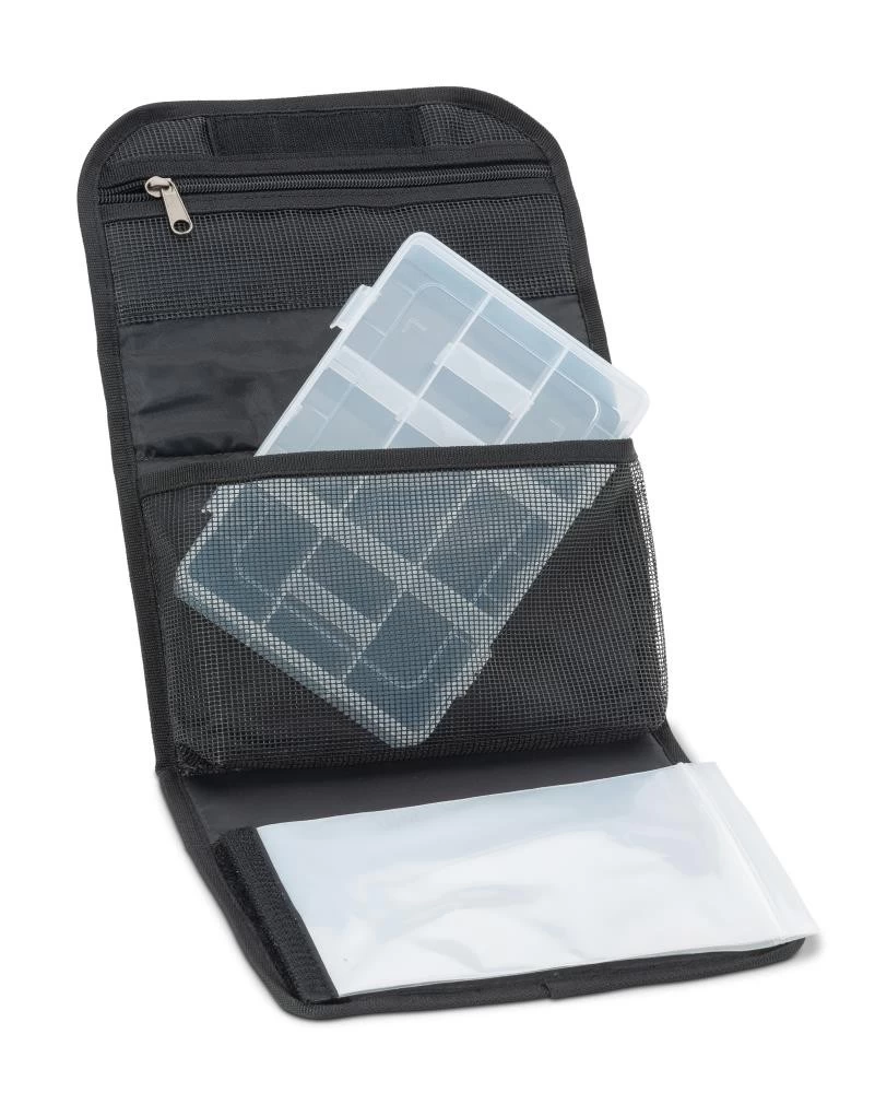 Kleine Taschen um darin Werkzeug, Material zum Bau von Vorfächern zu verstauen und natürlich gibt es auch Platz um schon fertig montierte Vorfächer unterzubringen. Ausgestattet sind beide Leader Wallets mit einer (Leader Wallet I) bzw. drei (Leader Wallet II) Tackle Boxen um alle nötigen Kleinteile unterzubringen.