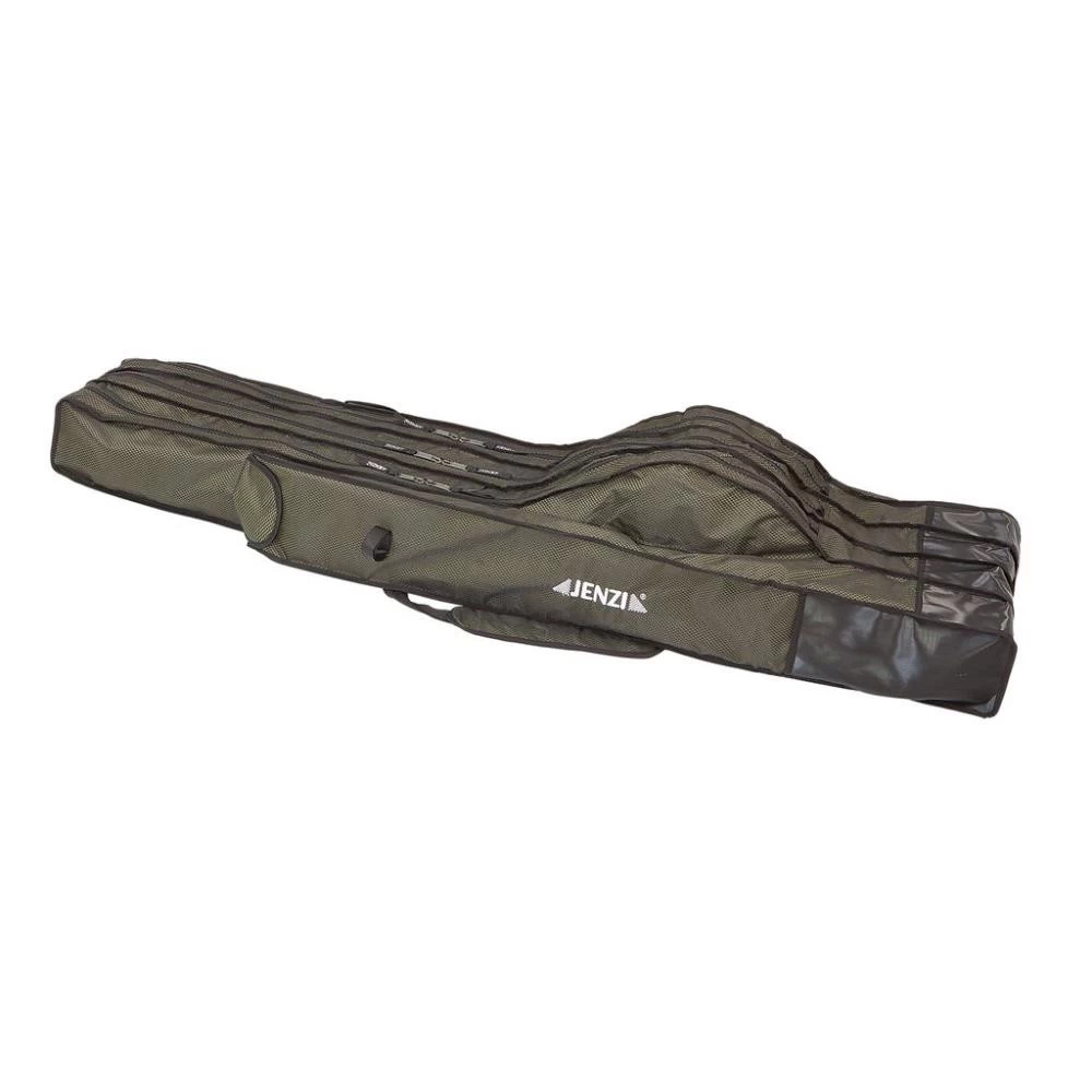 Das Rutenfutteral ist sehr praktisch und zweckmäßig für den Transport von ca. 3-5 komplett montieren Angelruten. Es hat 3 separate Fächer mit Reißverschluß – und 2 aufgesetzten Außentaschen für Kescher, Rutenhalter, Banksticks usw. Es ist komfortabel zu Tragen, dabei unterstützen 2 gepolsterte Schultergurte. Ein schickes Design runden das Profil ab. Das Material besteht aus 100 % Polyester.