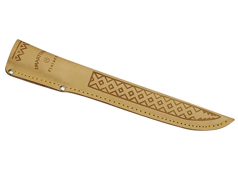 Natur und High-Tech zu verbinden, gelingt den Finnen immer wieder. Bei diesem Marttiini Filetiermesser ist der Griff aus Holz. Die sehr scharfe Klinge besteht aus rostfreiem Chromstahl. Das Messer wird in einer braunen Lederscheide mit Gürtelschlaufe und Durchstechschutz geliefert.
