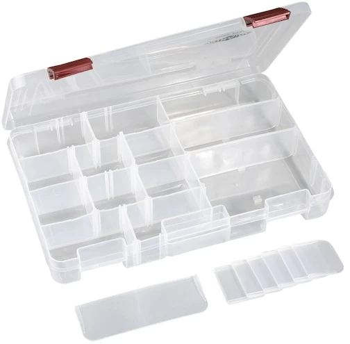 Diese Zubehörbox hat eine Größe von 27,5 x 18 x 4cm. Sie ist individuell einteilbar und damit optimal für die Aufbewahrung von Blinkern, Spinnern oder sonstigen Zubehör geeignet. Sie ist einer sehr gute Ergänzung des MIKADO Taschenprogramms.