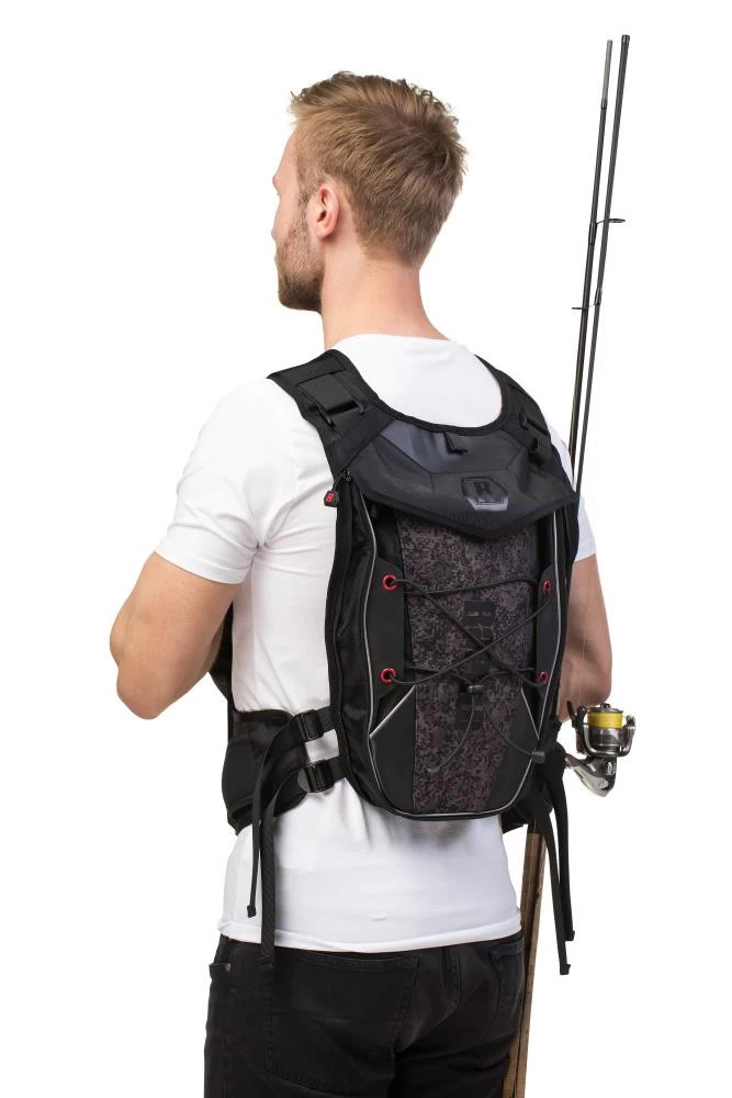 Diese Anglerweste besitzt zusätzlich einen integrierten Rucksack.