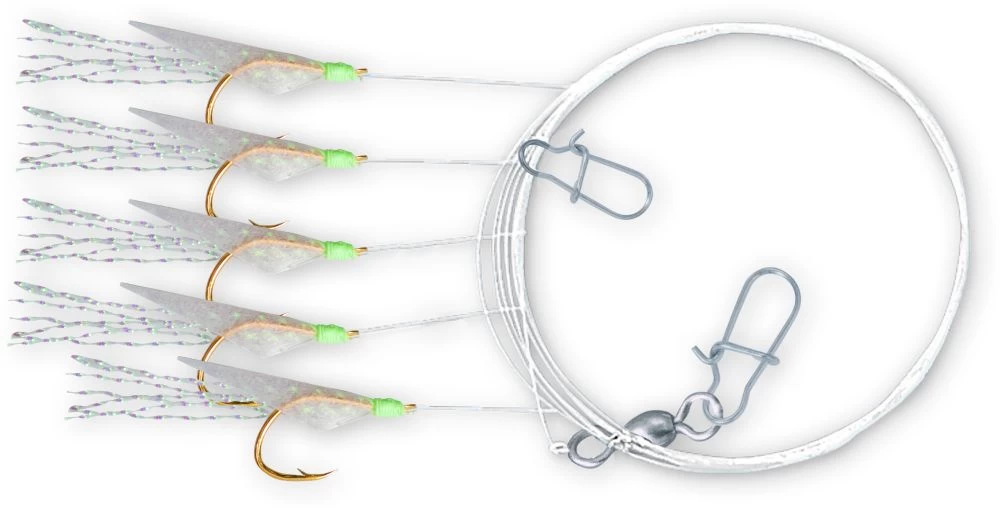 Beim Heringsangeln kommt es auf das richtige Vorfach an. Somit fangen einige Angler immer deutlich mehr Fische als andere. Das Holografix Vorfach vereint alle wichtigen Eigenschaften, damit der Fangeimer schnell gefüllt ist. Scharfe, stabile Haken gebunden mit echter Fischhaut und zusätzlichen holografischen Fäden machen dieses Vorfach perfekt. Es gibt drei verschiedene Farben mit jeweils 5 Haken zur Auswahl. Die verwendeten Haken haben die Größe 10 bzw. 8.